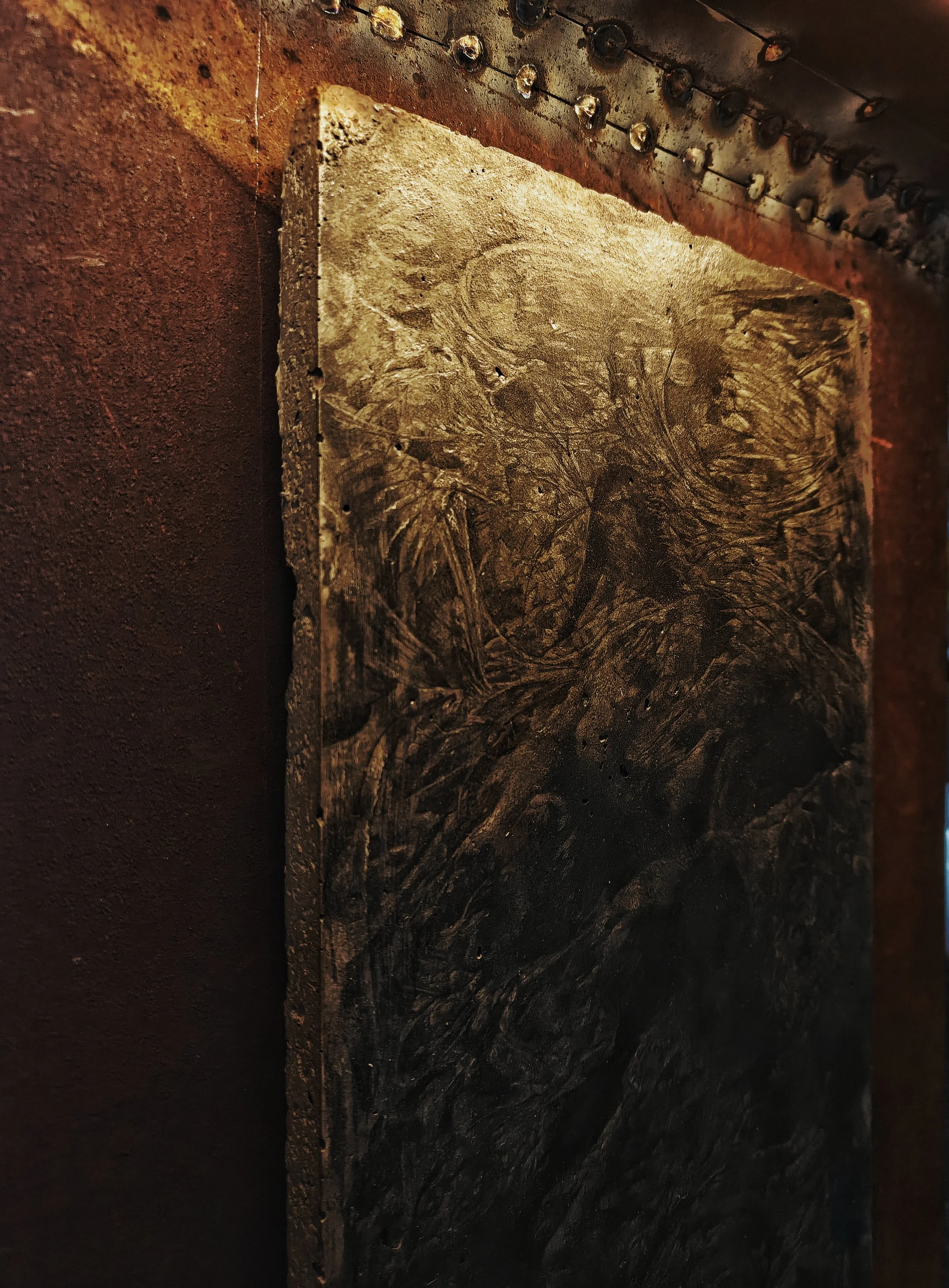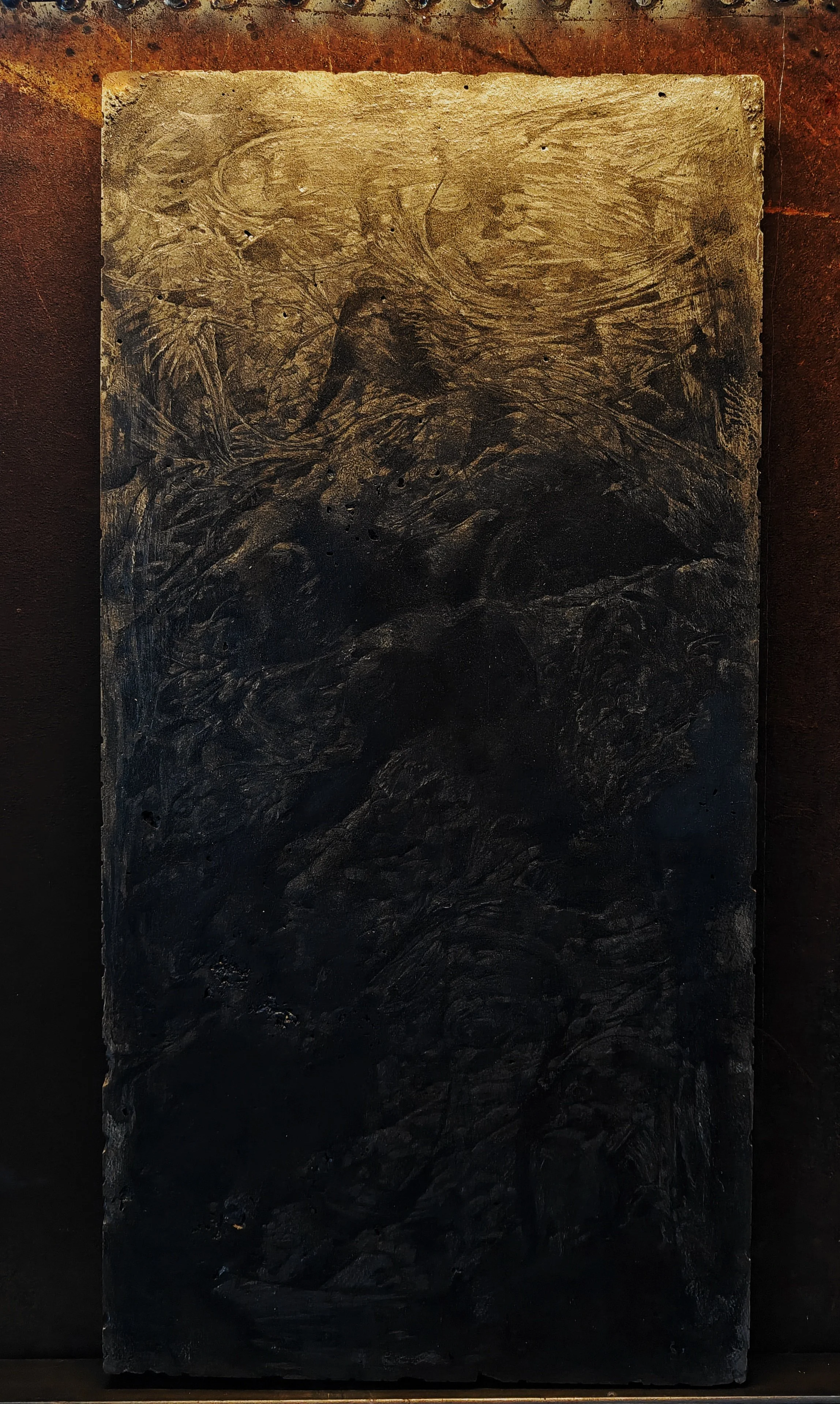 Drawn with a knife on recycled composite material "stone", on top of lithographic crayon dust.